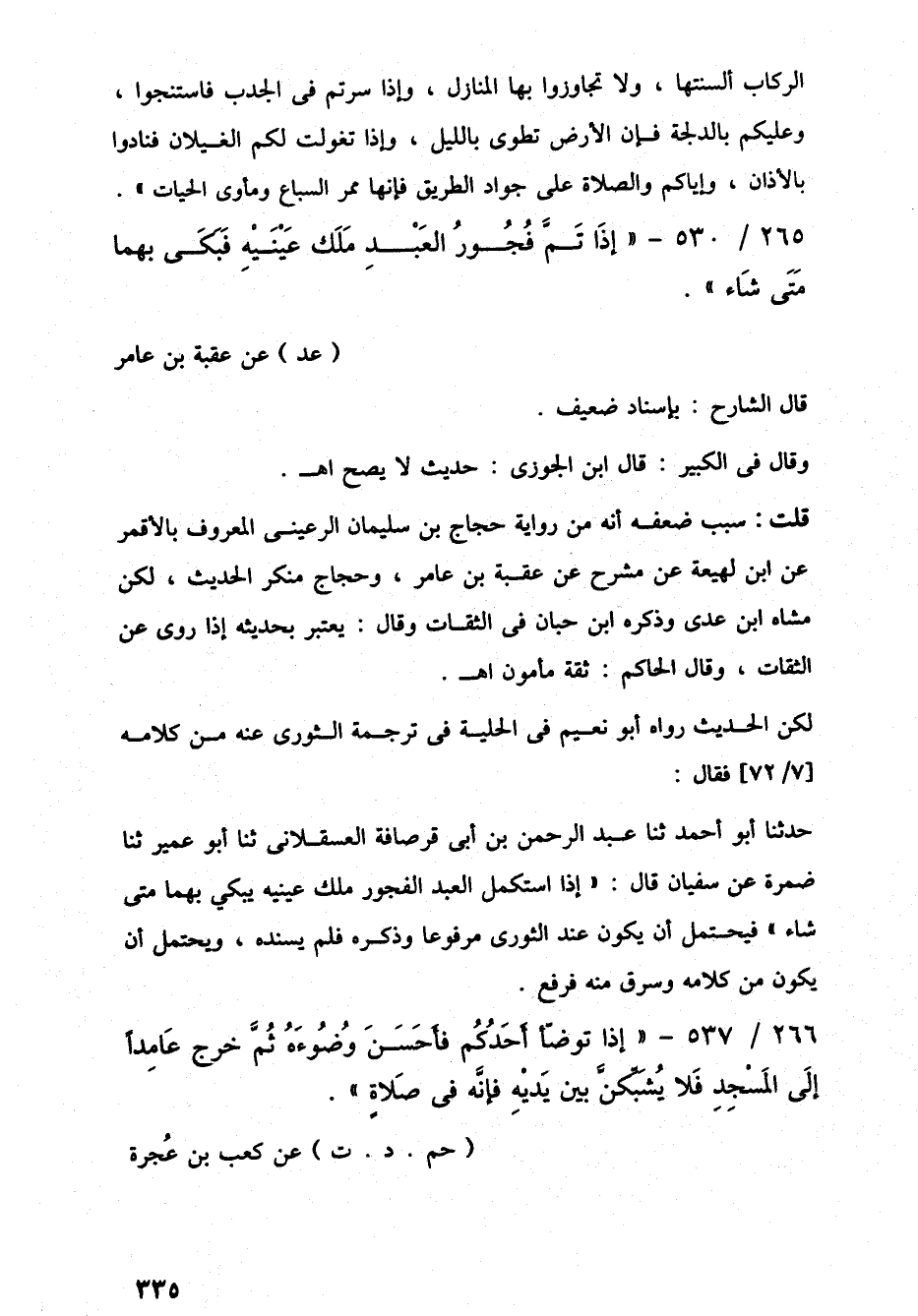 266/ 537 - "إِذَا تَوضّأ أحَدُكُم فأَحَسَنَ وُضُوءَهُ ثُمَّ خرج عَامِدًا إِلَى المَسْجِد فَلا يُشَبِّكنَّ بين يَدَيْهِ فإِنَّه في صَلاةٍ".