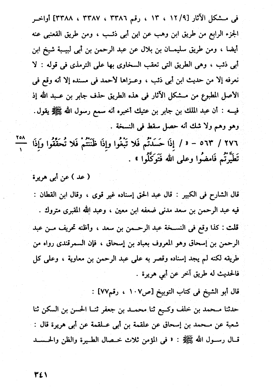 276/ 563 - "إِذَا حَسَدْتُم فَلا تَبْغُوا وَإِذَا ظَنَنْتُمْ فَلا تُحَقِّقُوا وَإِذَا تَطَيَّرْتُم فَامضُوا وعلى اللَّه فَتَوَكَّلُوا". (عد) عن أبي هريرة