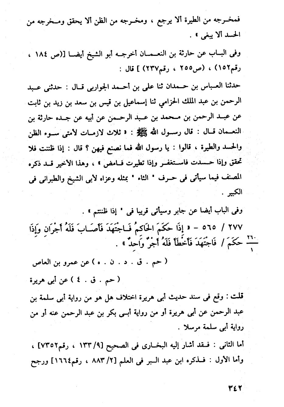 277/ 565 - "إِذَا حَكَمَ الحَاكِمُ فَاجْتَهَدَ فَأَصَابَ فَلَهُ أَجْرَانِ وَإِذَا حكَمَ فَاجْتَهَدَ فَأَخْطَأَ فَلَهُ أَجْرٌ وَاحِدٌ".