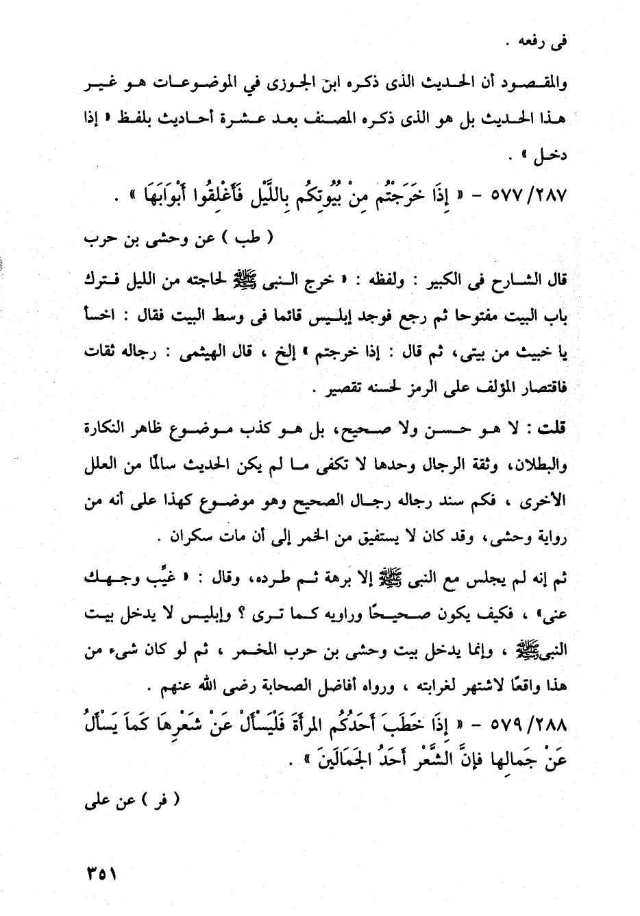 287/ 577 - "إِذَا خَرَجْتُم مِنْ بُيُوتِكُم بِاللَّيْل فَأَغْلِقُوا أَبْوَابَهَا". (طب) عن وحشى بن حرب