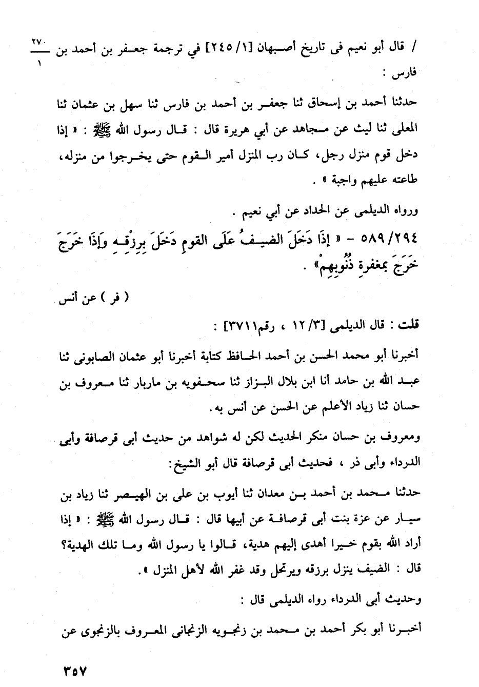 أخبرنا أبو محمد الحسن بن أحمد الحافظ كتابة أخبرنا أبو عثمان الصابونى ثنا عبد اللَّه بن حامد أنا ابن بلال البزاز ثنا سحفويه بن ماربار ثنا معروف بن حسان ثنا زياد الأعلم عن الحسن عن أنس به.