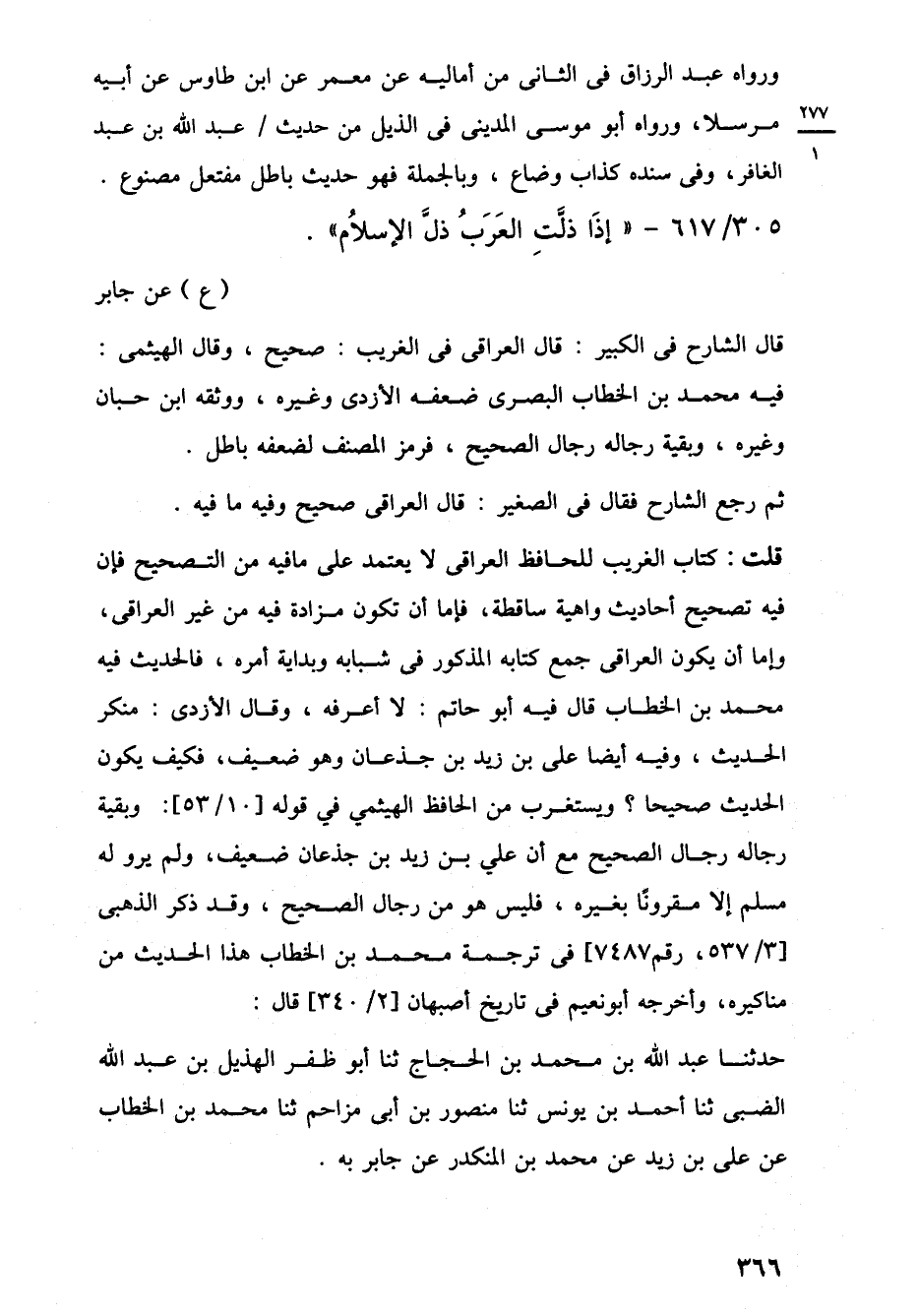 305/ 617 - "إِذَا ذلَّتِ العَرَبُ ذلَّ الإسلامُ". (ع) عن جابر
