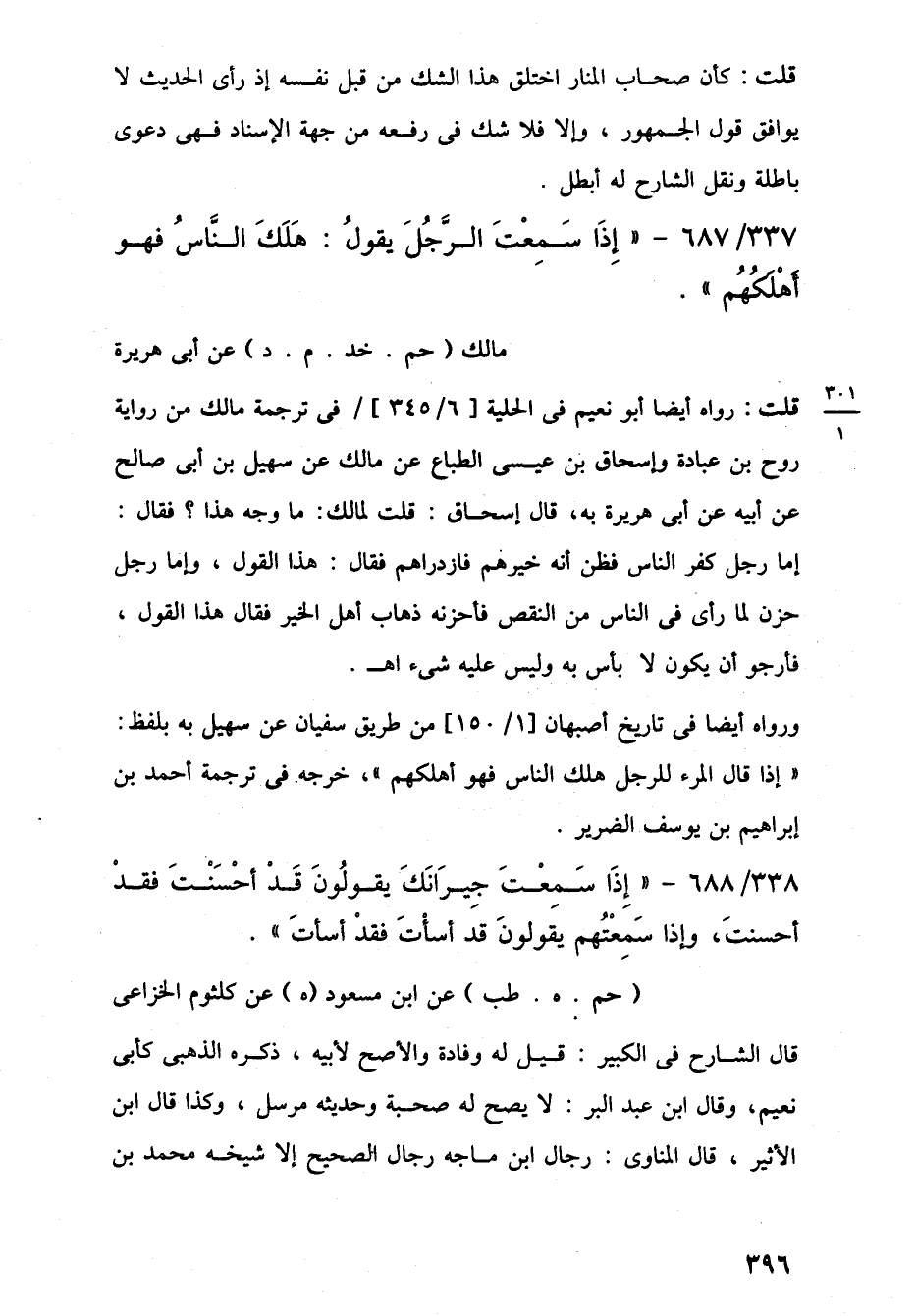 337/ 687 - "إِذَا سَمِعْتَ الرَّجُلَ يقولُ: هَلَكَ النَّاسُ فهو أَهْلكُهُم".
