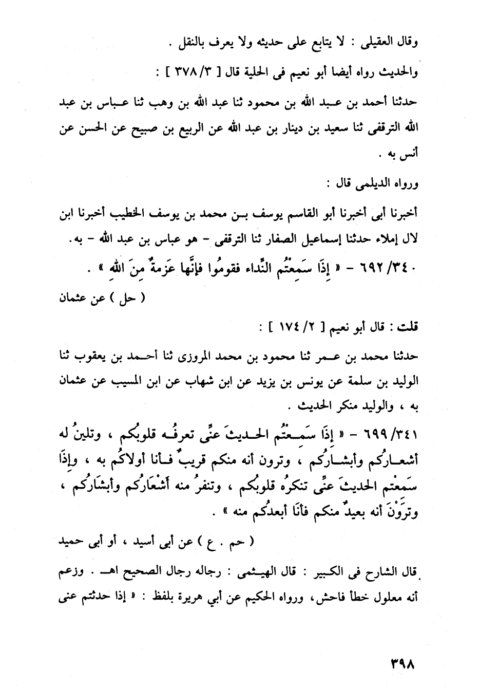 340/ 692 - "إِذَا سَمِعْتُم النِّداء فقومُوا فإنَّها عَزمةٌ مِنَ اللَّهِ". (حل) عن عثمان