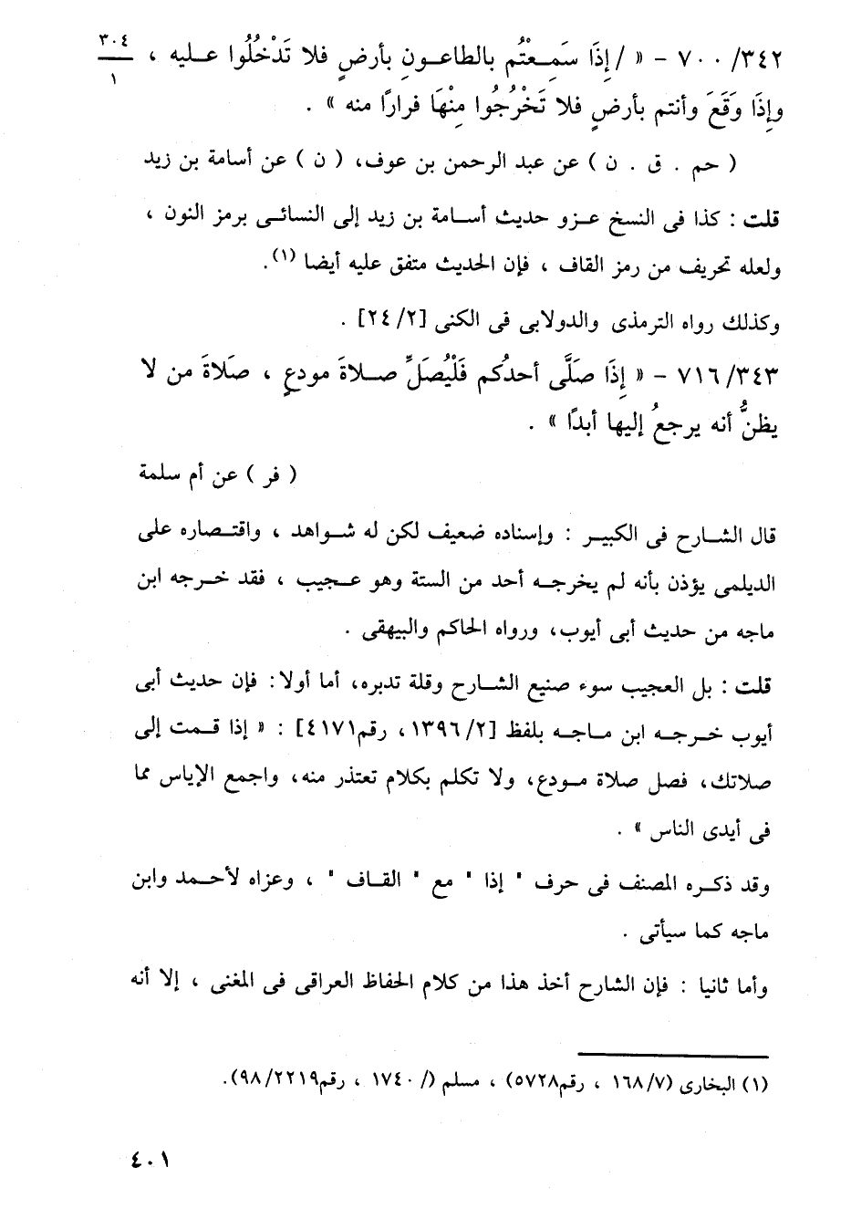 342/ 700 - "إِذَا سَمِعْتُم بالطاعونِ بأرضٍ فلا تَدْخُلُوا عليه، وإِذَا وَقَعَ وأنتم بأرضٍ فلا تَخْرُجُوا مِنْهَا فرارًا منه".