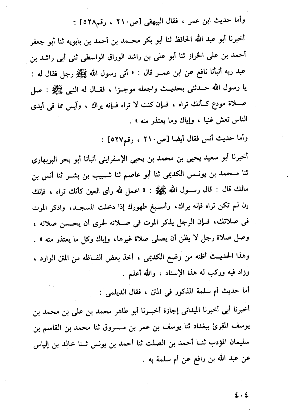 وأما حديث ابن عمر، فقال البيهقى [ص 210، رقم 528]: