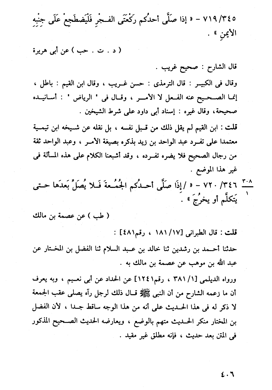 345/ 719 - "إذا صَلَّى أحدُكم رَكْعَتَى الفجْرِ فَلْيَضطَجعْ عَلَى جِنْبِهِ الأيمنِ". (د. ت. حب) عن أبي هريرة