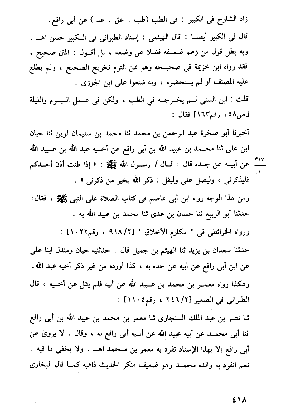 حدثنا سعدان بن يزيد ثنا الهيثم بن جميل قال: حدثنيه حبان ومندل ابنا على عن ابن أبي رافع عن أبيه عن جده به، كذا أورده من غير ذكر أخيه عبد اللَّه. وهكذا رواه معمر بن محمد بن عبيد اللَّه عن أبيه فلم يقل عن أخيه، قال الطبرانى في الصغير [2/ 246، رقم 1104]: