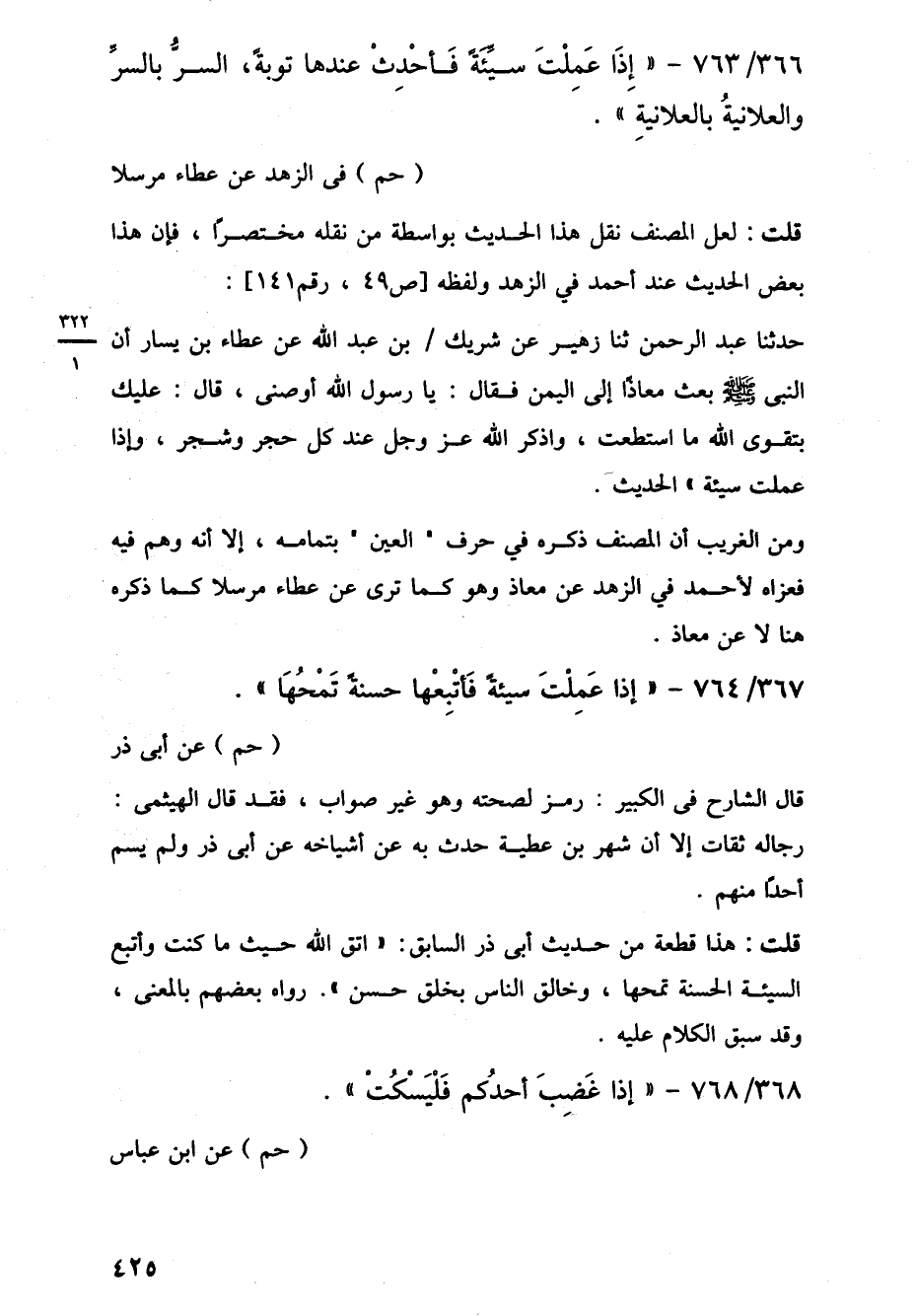 367/ 764 - "إِذَا عَمِلْتَ سيئةً فَأتْبِعْها حسنةً تَمْحُهَا". (حم) عن أبي ذر