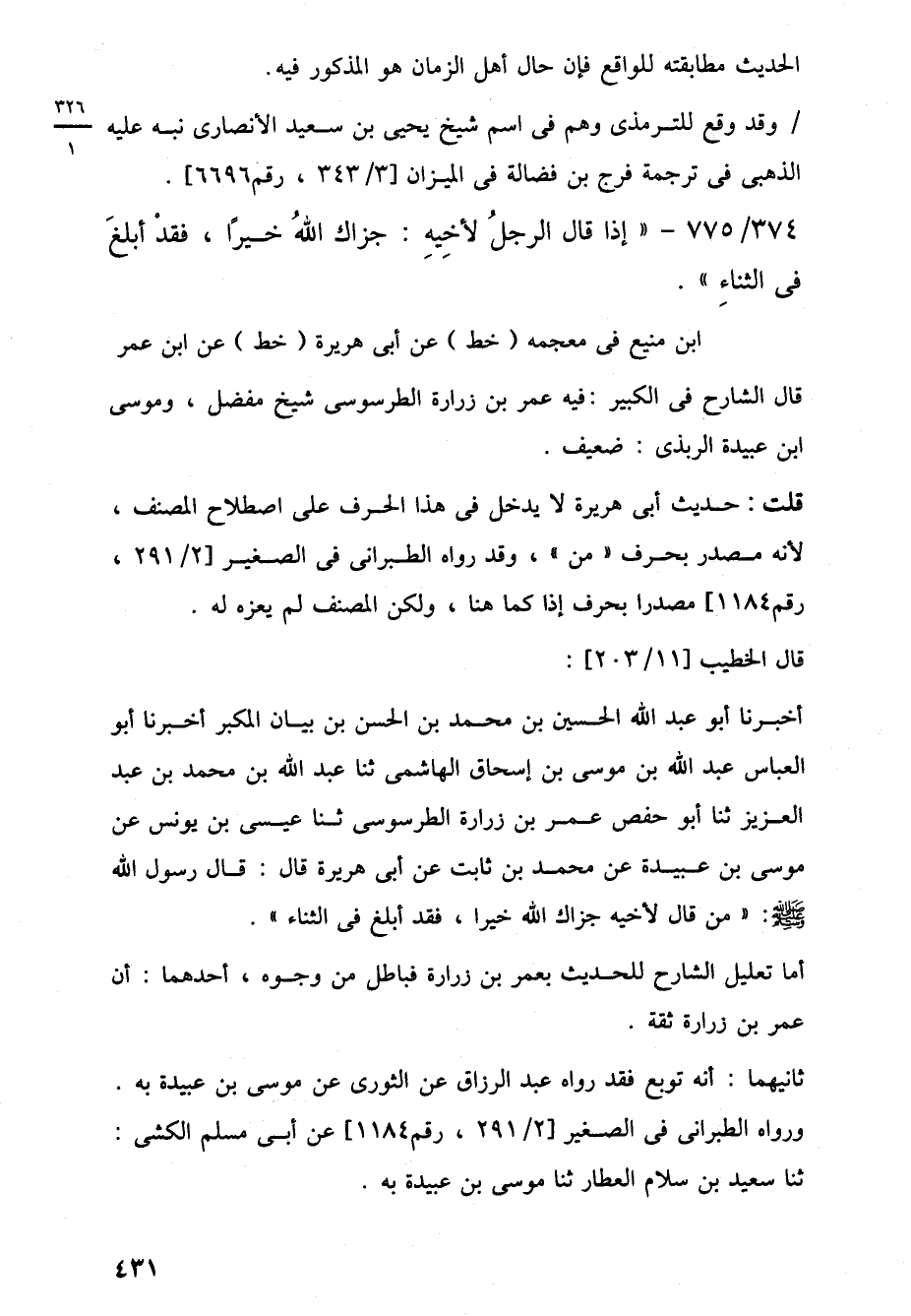 374/ 775 - "إِذَا قال الرجلُ لأخِيهِ: جزاك اللَّهُ خيرًا، فقدْ أبلغَ في الثناءِ".