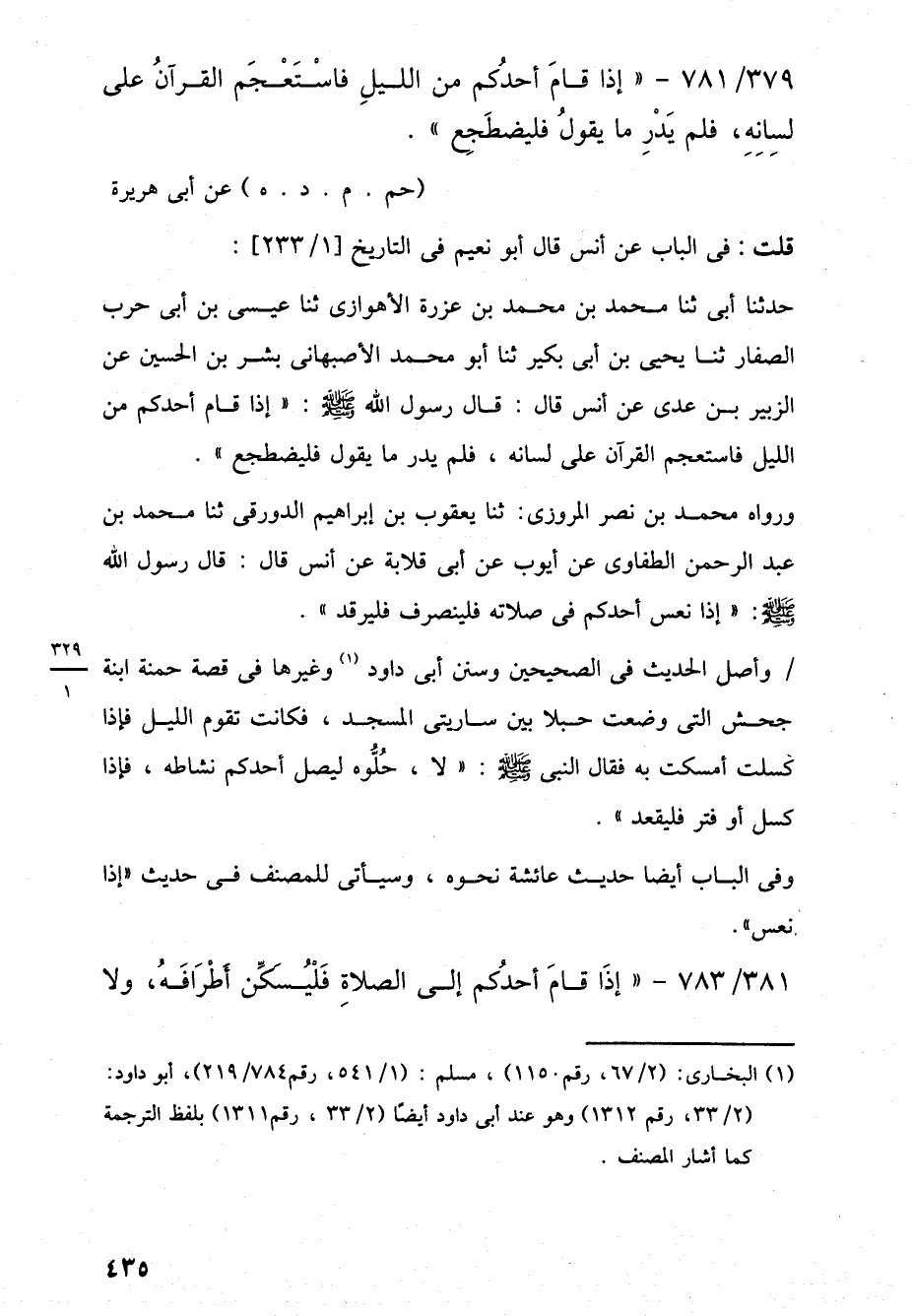 379/ 781 - "إذا قامَ أحدُكم من الليلِ فاسْتَعْجَم القرآنُ على لسِانِهِ، فلم يَدْرِ ما يقولُ فليضطَجِع".