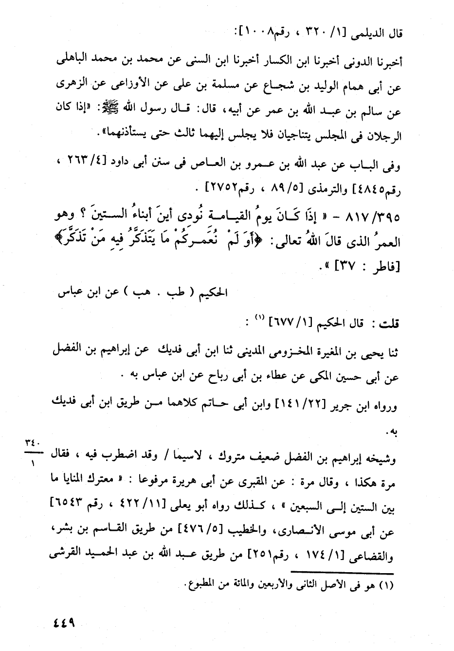 395/ 817 - "إِذَا كَانَ يومُ القيامةِ نُودِى أينَ أبناءُ الستينَ؟ وهو العمرُ الذي قالَ اللَّهُ تعالى: {أَوَلَمْ نُعَمِّرْكُمْ مَا يَتَذَكَّرُ فِيهِ مَنْ تَذَكَّرَ} [فاطر: 37] ".