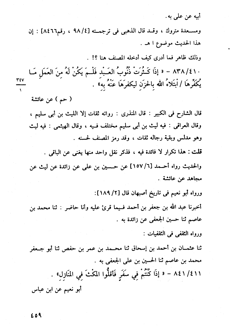 411/ 841 - "إِذَا كُنْتُمْ فِي سَفَرٍ فَأقلُّوا المكْثَ فِي المنَازِلِ". أبو نعيم عن ابن عباس