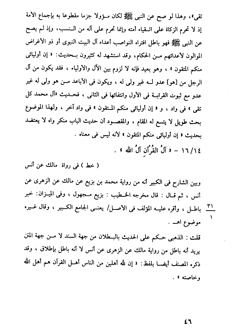 14/ 16 - "آلُ القُرْآنِ آلُ اللَّه". (خط) في رواة مالك عن أنس