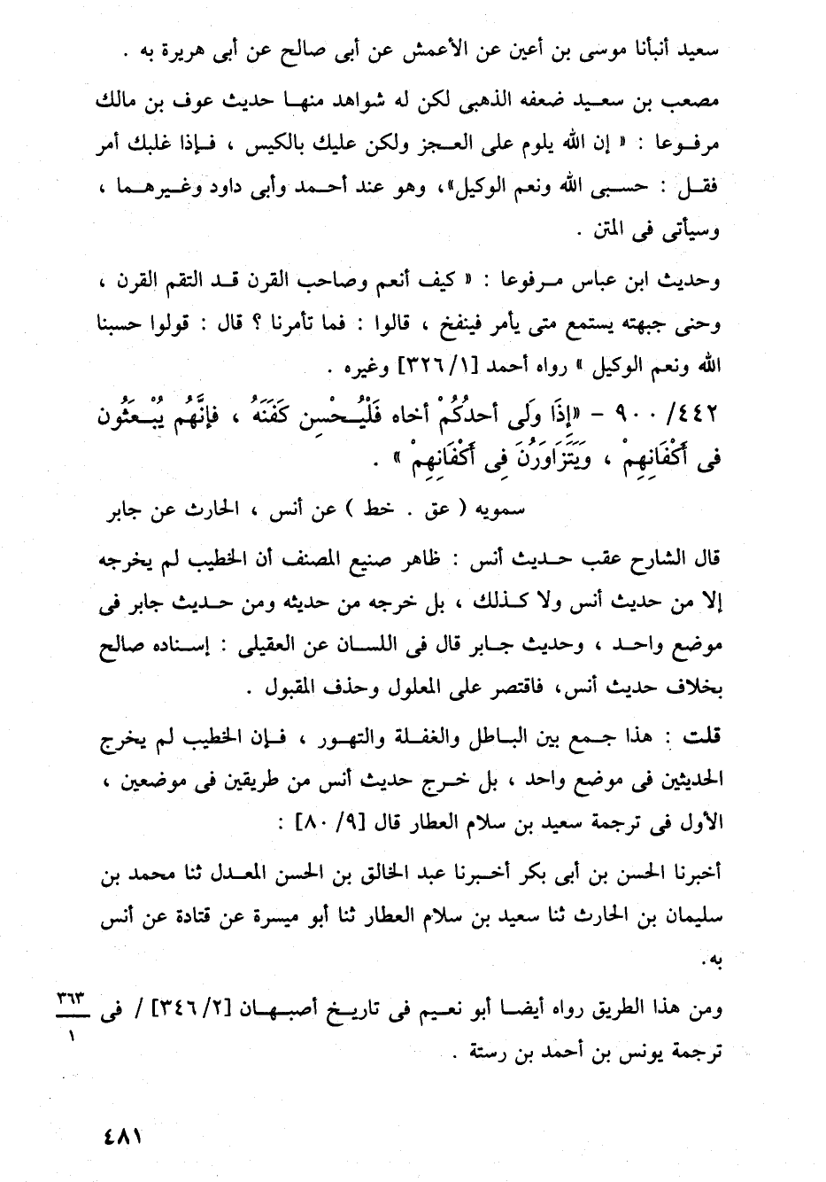 قلت: هذا جمع بين الباطل والغفلة والتهور، فإن الخطيب لم يخرج الحديثين في موضع واحد، بل خرج حديث أنس من طريقين في موضعين، الأول في ترجمة سعيد بن سلام العطار قال [9/ 80]: