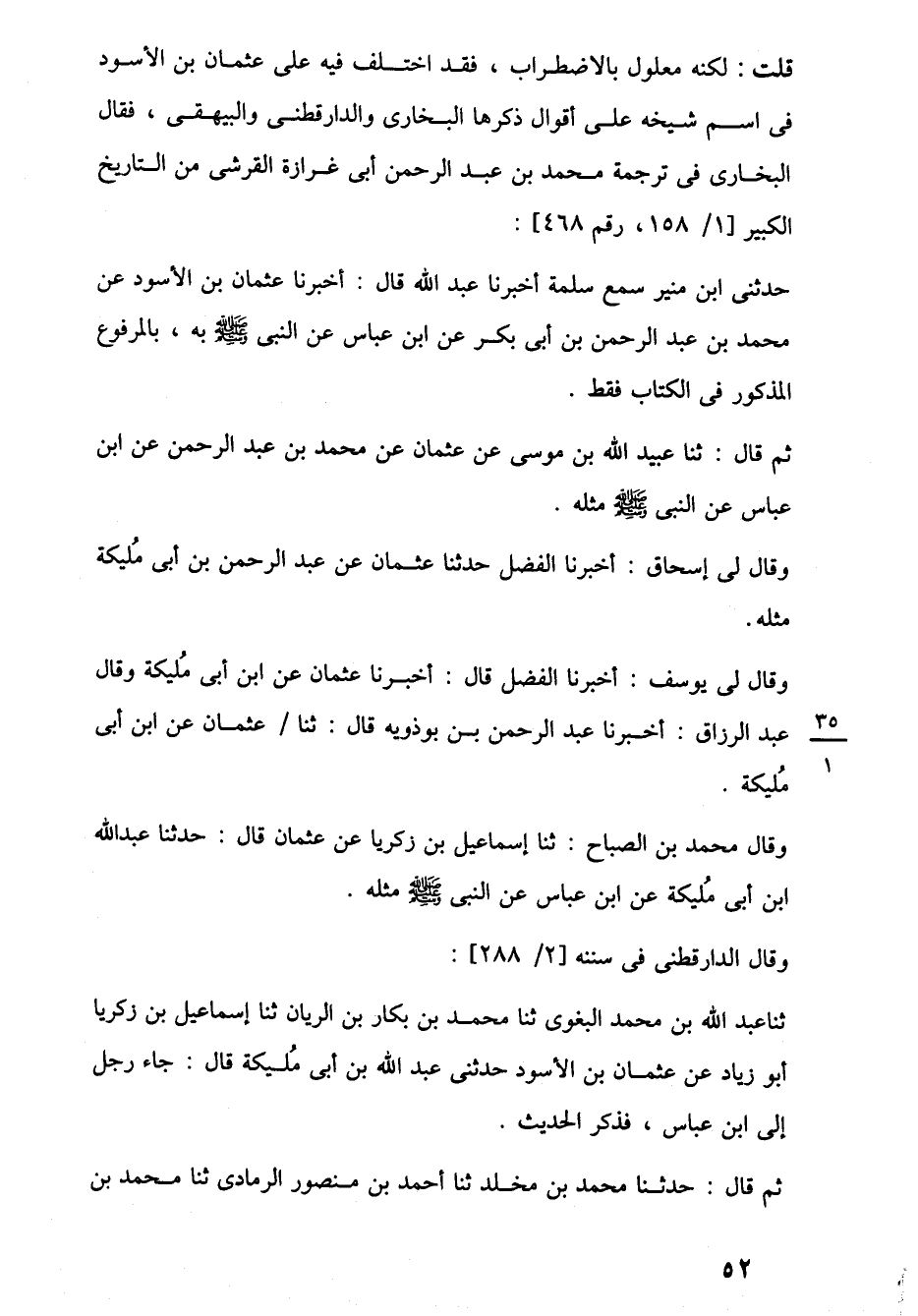 ثم قال: ثنا عبيد اللَّه بن موسى عن عثمان عن محمد بن عبد الرحمن عن ابن عباس عن النبي -صلى اللَّه عليه وسلم- مثله.