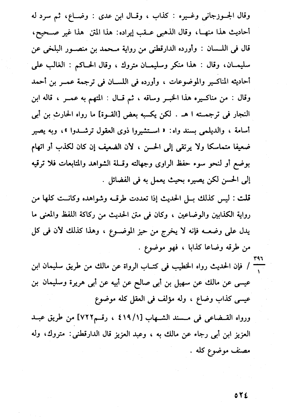 وقال الجوزجانى وغيره: كذاب، وقال ابن عدى: وضاع، ثم سرد له أحاديث هذا منها، وقال الذهبى عقب إيراده: هذا المتن هذا غير صحيح، قال في اللسان: وأورده الدارقطنى من رواية محمد بن منصور البلخى عن سليمان، وقال: هذا منكر وسليمان متروك، وقال الحاكم: الغالب على أحاديثه المناكير والموضوعات، وأورده في اللسان في ترجمة عمر بن أحمد وقال: من مناكيره هذا الخبر وساقه، ثم قال: المتهم به عمر، قاله ابن النجار في ترجمته اهـ. لكن يكسبه بعض [القوة] ما رواه الحارث بن أبي أسامة، والديلمى بسند واه: "استشيروا ذوى العقول ترشدوا"، وبه يصير ضعيفا متماسكا ولا يرتقى إلى الحسن، لأن الضعيف إن كان لكذب أو اتهام بوضع أو لنحو سوء حفظ الراوى وجهالته وقلة الشواهد والمتابعات فلا ترقيه إلى الحسن لكن يصيره بحيث يعمل به في الفضائل.