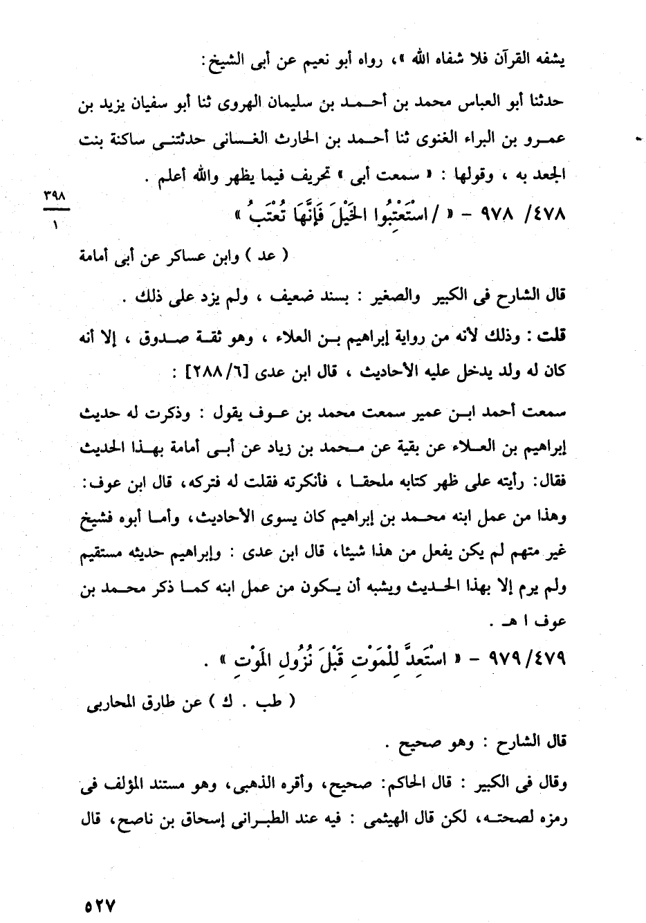 478/ 978 - "اسْتَعْتِبُوا الخَيْلَ فَإِنَّهَا تُعْتَبُ" (عد) وابن عساكر عن أبي أمامة
