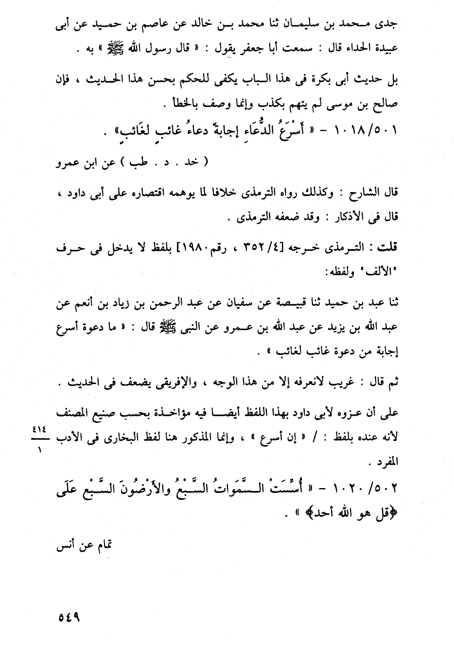 501/ 1018 - "أَسْرعُ الدُّعَاءِ إجابةً دعاءُ غائبٍ لغَائبٍ". (خد. د. طب) عن ابن عمرو