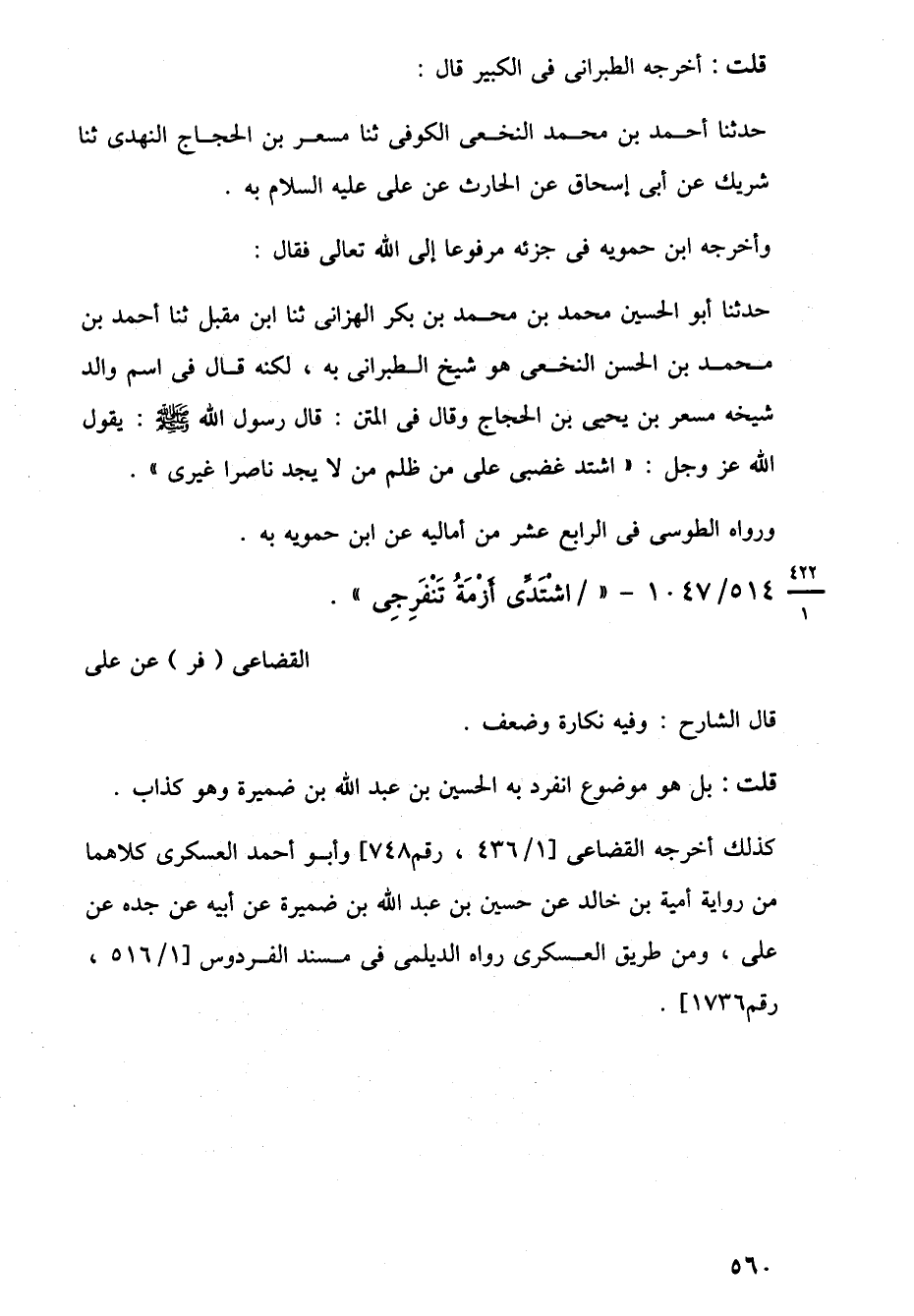 حدثنا أحمد بن محمد النخعى الكوفى ثنا مسعر بن الحجاج النهدى ثنا شريك عن أبي إسحاق عن الحارث عن على عليه السلام به.