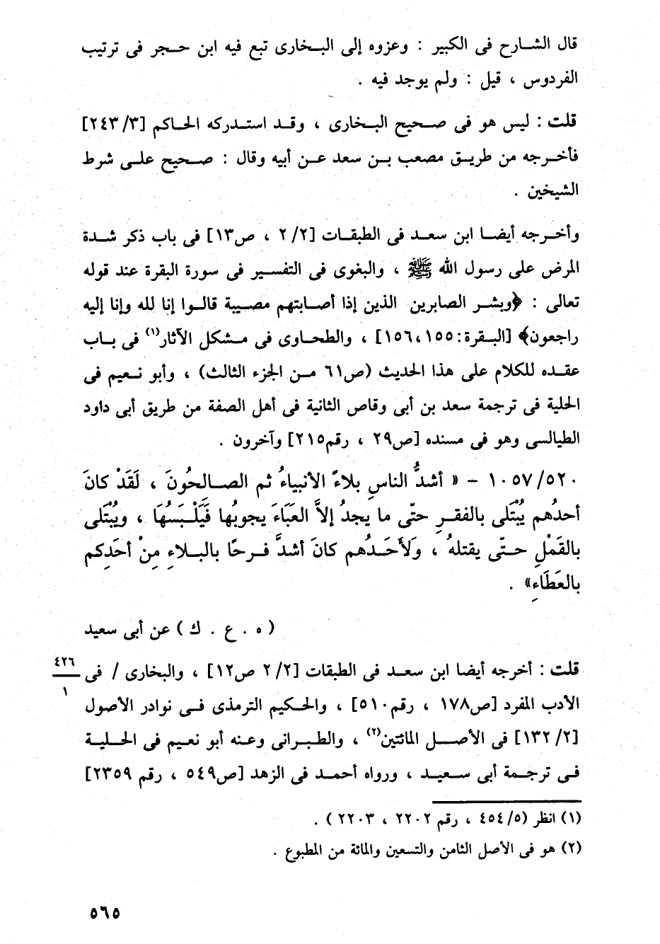 520/ 1057 - "أشدُّ الناسِ بلاءً الأنبياءُ ثم الصالحُونَ، لَقَدْ كانَ أحدُهم يُبْتَلى بالفقرِ حتّى ما يجدُ إلَّا العَبَاءَ يجوبُها فَيَلْبَسُهَا، ويُبْتَلى بالقَمْلِ حتّى يقتلهُ، وَلأَحَدُهم كانَ أشدَّ فرحًا بالبلاءِ مِنْ أحَدِكم بالعَطَاءِ".