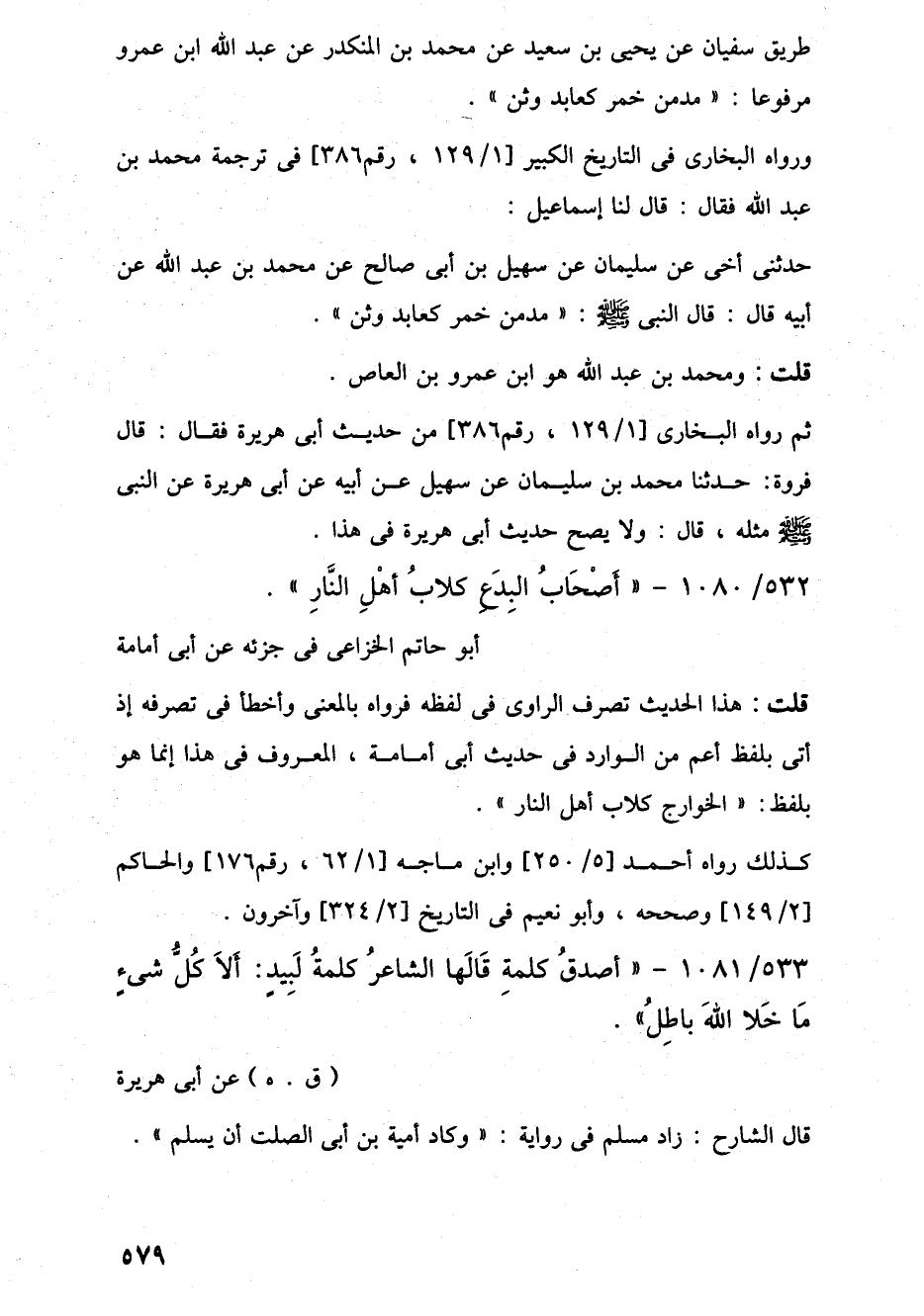 533/ 1081 - "أصدقُ كلمة قَالَها الشاعرُ كلمةُ لَبِيدٍ: أَلَا كُلُّ شيءٍ مَا خَلا اللَّه باطِلُ".