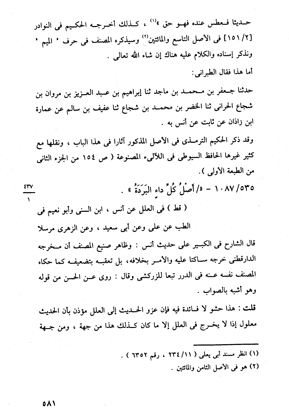وقد ذكر الحكيم الترمذى في الأصل المذكور آثارا في هذا الباب، ونقلها مع كثير غيرها الحافظ السيوطى في اللآلئ المصنوعة (ص 154 من الجزء الثاني من الطبعة الأولى).