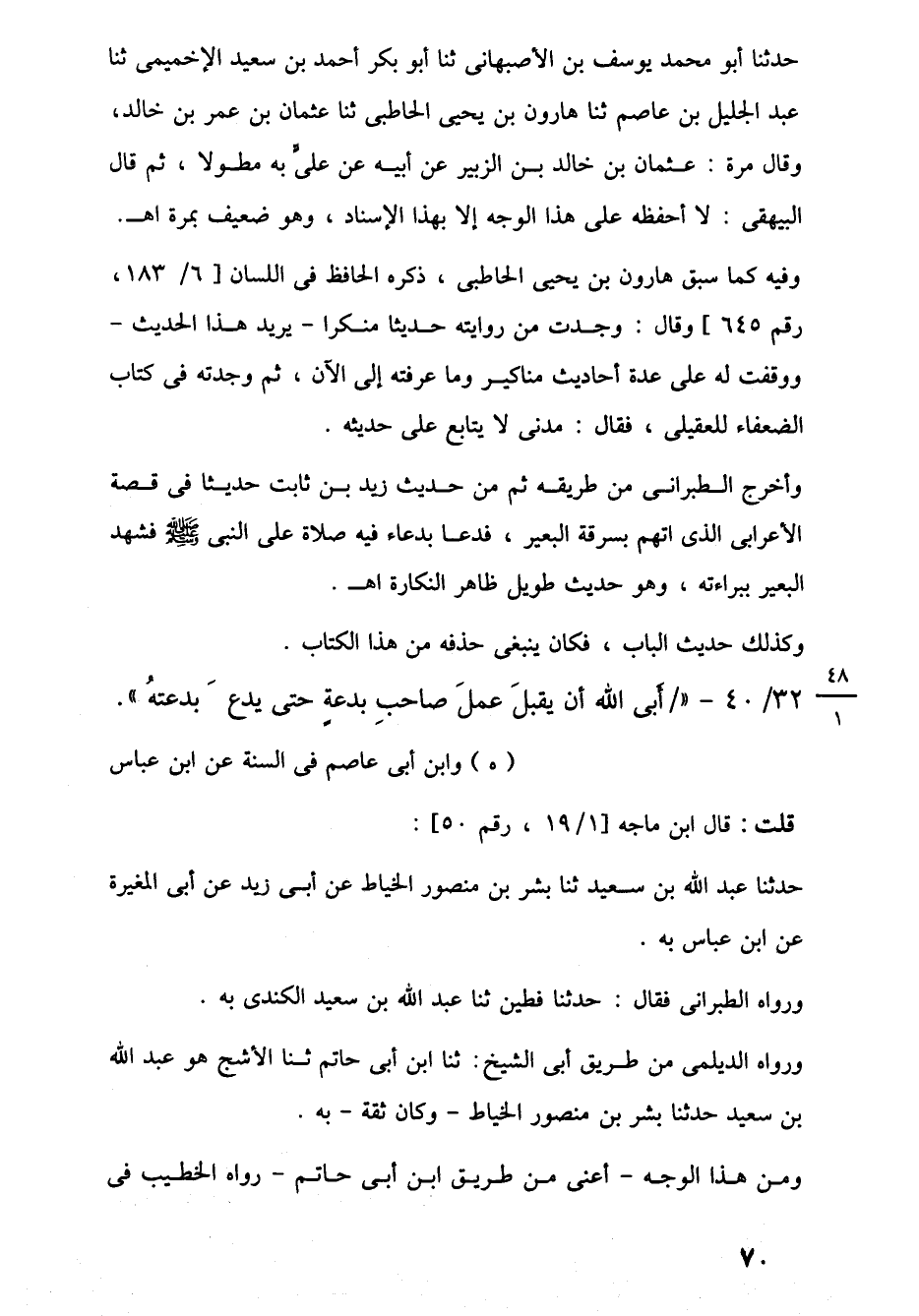32/ 40 - "أبى اللَّه أن يقبلَ عملَ صاحبِ بدعةٍ حتى يدعَ بدعتهُ". (هـ) وابن أبي عاصم في السنة عن ابن عباس