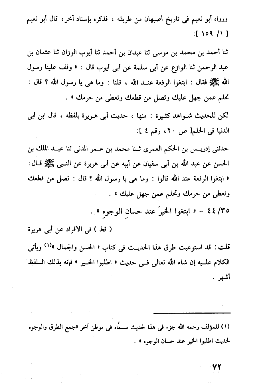 (¬1) للمؤلف رحمه اللَّه جزء في هذا لحديث سمَّاه في موطن آخر "جمع الطرق والوجوه لحديث اطلبوا الخير عند حسان الوجوه".