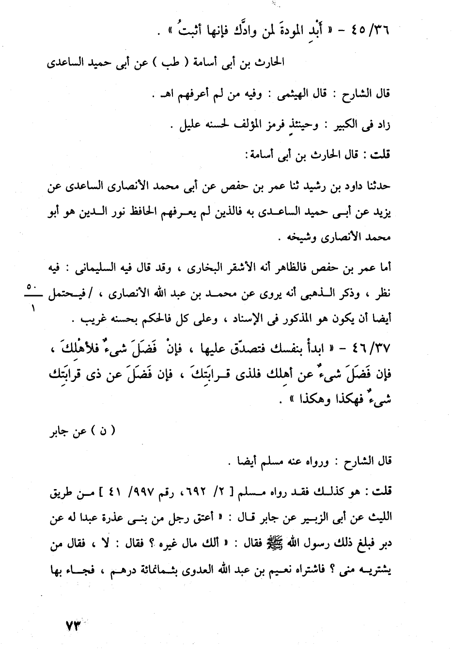 36/ 45 - "أَبْدِ المودةَ لمن وادَّك فإنها أثبتُ". الحارث بن أبي أسامة (طب) عن أبي حميد الساعدى