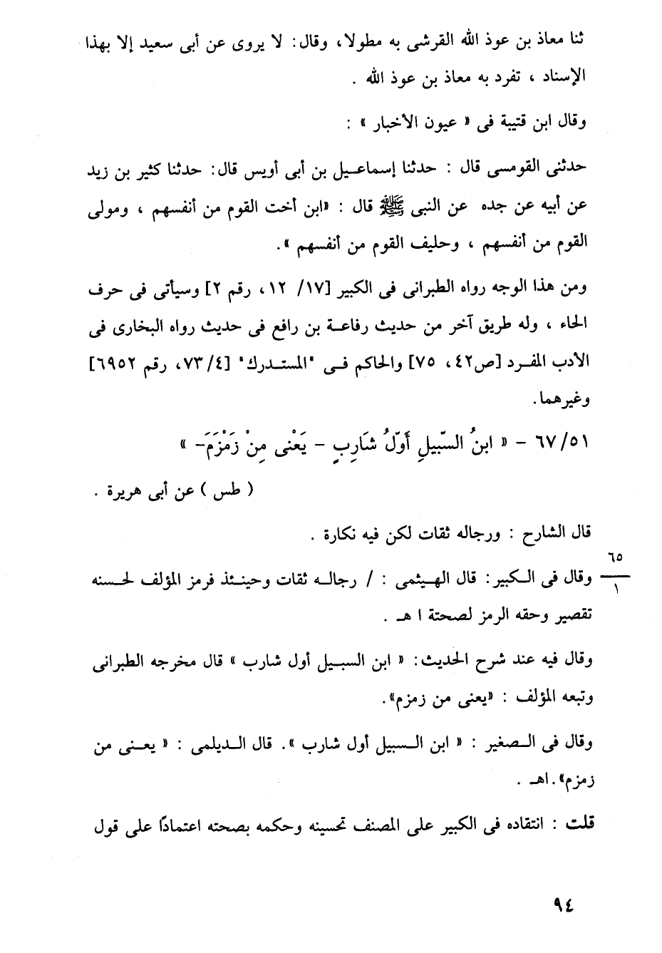 51/ 67 - "ابنُ السّبيلِ أوّلُ شَارِبٍ -يَعْنى مِنْ زَمْزَمَ-" (طس) عن أبي هريرة.