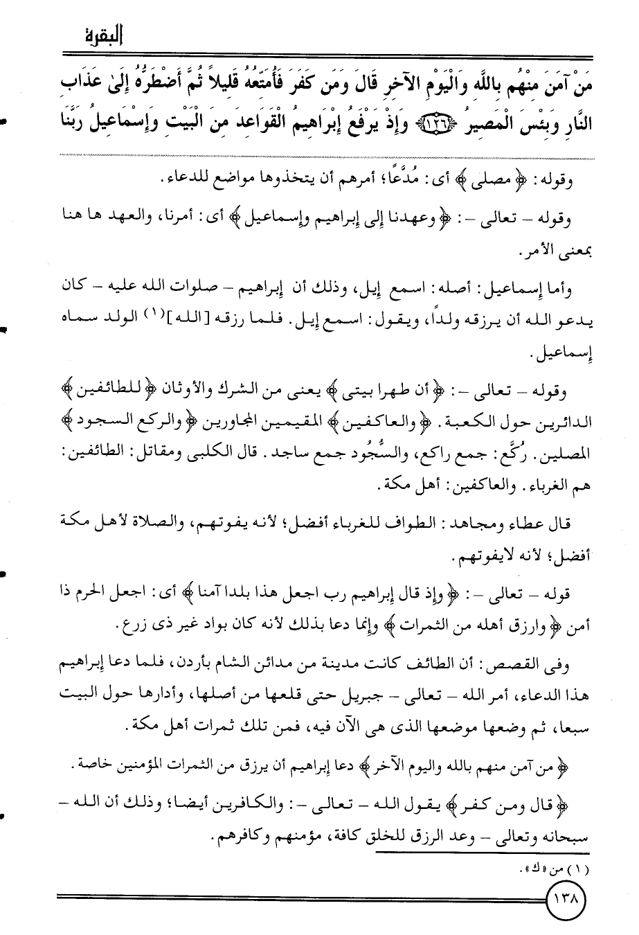 {من آمن مِنْهُم بِاللَّه وَالْيَوْم الآخر قَالَ وَمن كفر فأمتعه قَلِيلا ثمَّ أضطره إِلَى عَذَاب النَّار وَبئسَ الْمصير (126) وَإِذ يرفع إِبْرَاهِيم الْقَوَاعِد من الْبَيْت وَإِسْمَاعِيل رَبنَا}