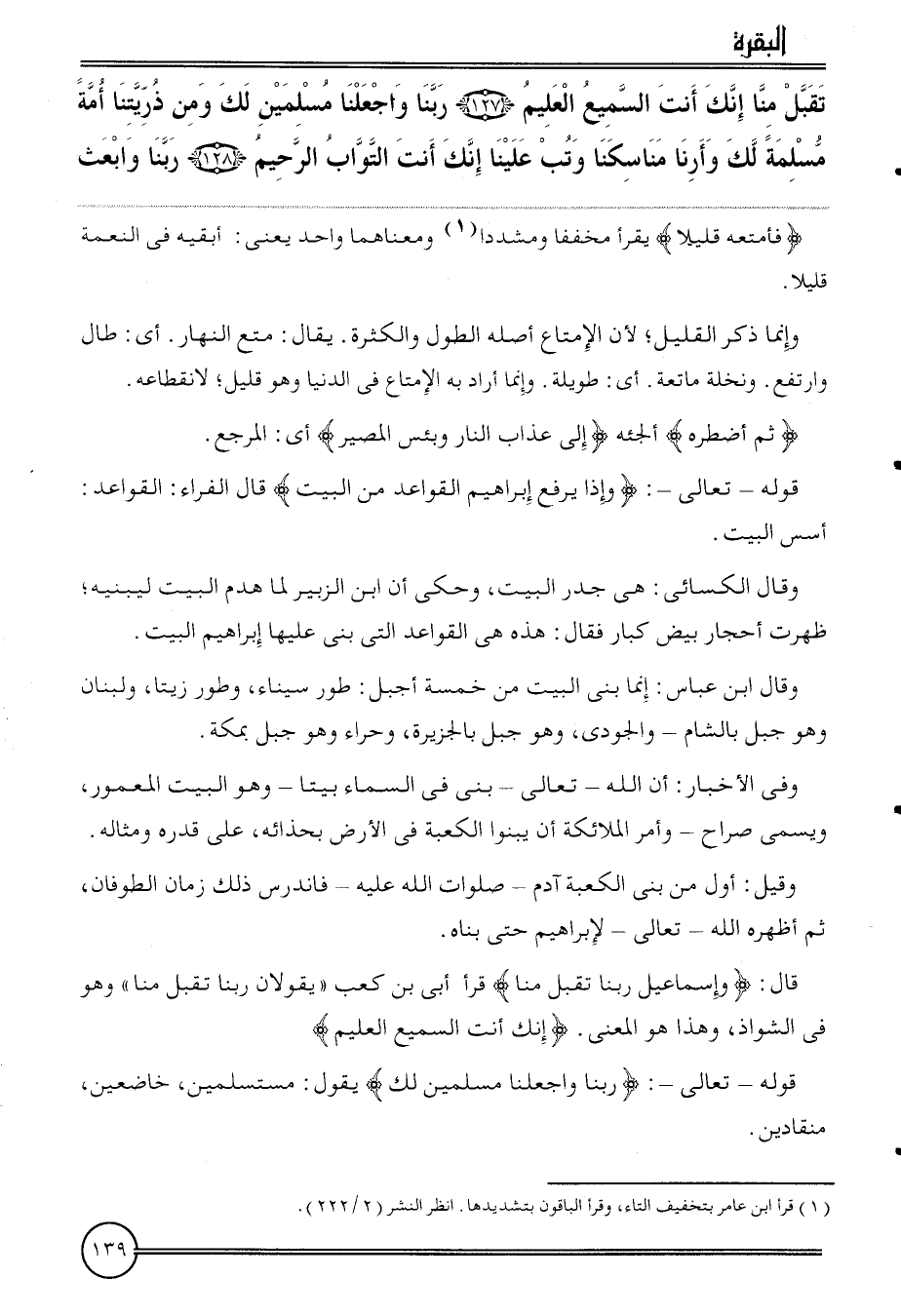 {تقبل منا إِنَّك أَنْت السَّمِيع الْعَلِيم (127) رَبنَا واجعلنا مُسلمين لَك وَمن ذريتنا أمة مسلمة لَك وأرنا مناسكنا وَتب علينا إِنَّك أَنْت التواب الرَّحِيم (128) رَبنَا وَابعث