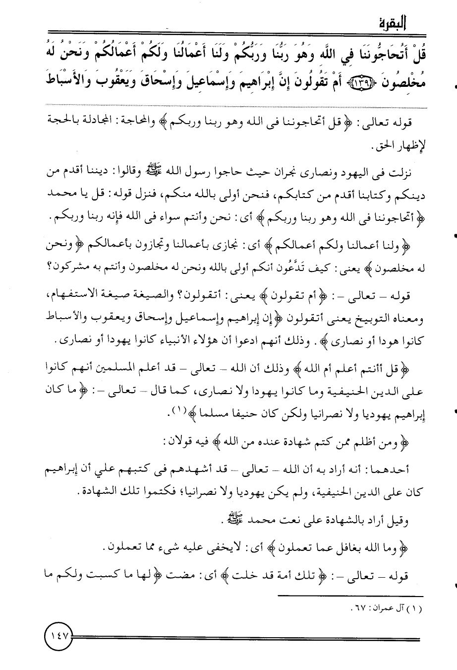 {قل أتحاجوننا فِي الله وَهُوَ رَبنَا وربكم وَلنَا أَعمالنَا وَلكم أَعمالكُم وَنحن لَهُ مخلصون (139) أم تَقولُونَ إِن إِبْرَاهِيم وَإِسْمَاعِيل وَإِسْحَاق وَيَعْقُوب والأسباط