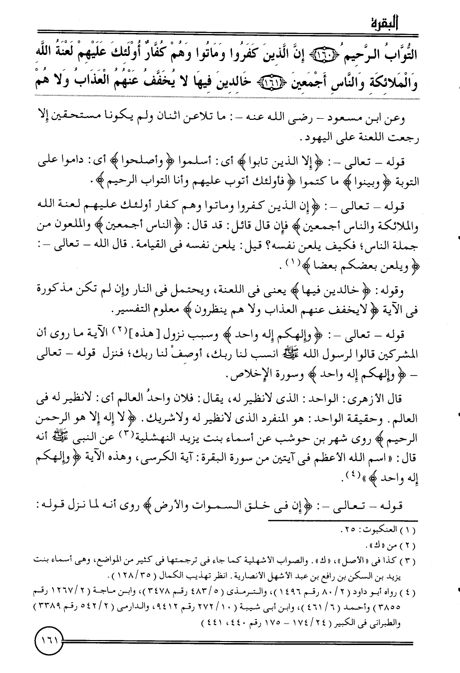 {التواب الرَّحِيم (160) إِن الَّذين كفرُوا وماتوا وهم كفار أُولَئِكَ عَلَيْهِم لعنة الله وَالْمَلَائِكَة وَالنَّاس أَجْمَعِينَ (161) خَالِدين فِيهَا لَا يخف عَنْهُم الْعَذَاب وَلَا هم}