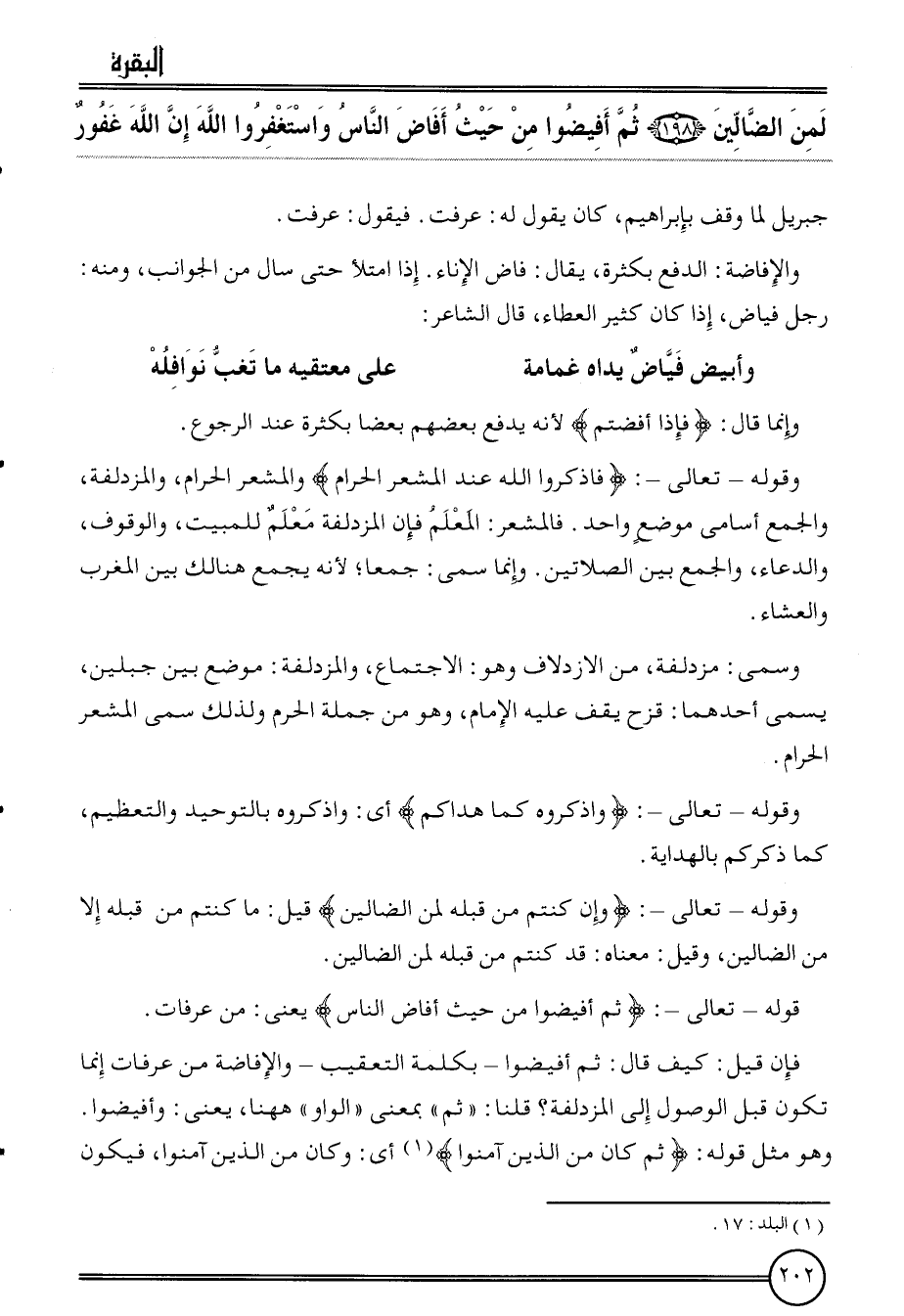 {لمن الضَّالّين (198) ثمَّ أفيضوا من حَيْثُ أَفَاضَ النَّاس وَاسْتَغْفرُوا الله إِن الله غَفُور} جِبْرِيل لما وقف بإبراهيم، كَانَ يَقُول لَهُ: عرفت. فَيَقُول: عرفت.