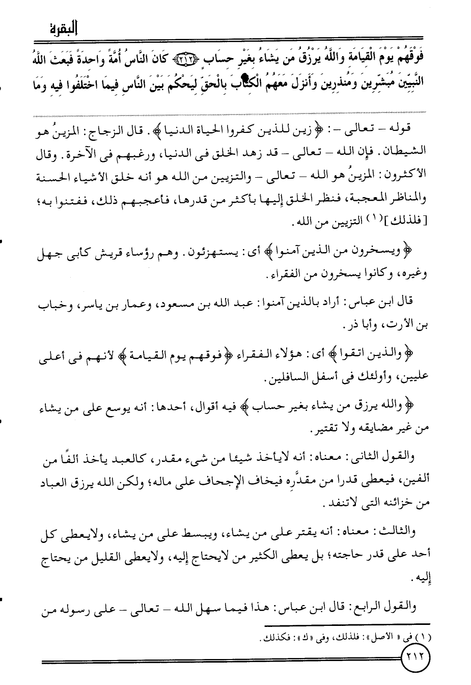 {فَوْقهم يَوْم الْقِيَامَة وَالله يرْزق من يَشَاء بِغَيْر حِسَاب (212) كَانَ النَّاس أمة وَاحِدَة فَبعث الله النَّبِيين مبشرين ومنذرين وَأنزل مَعَهم الْكتاب بِالْحَقِّ ليحكم بَين النَّاس فِيمَا اخْتلفُوا فِيهِ وَمَا}