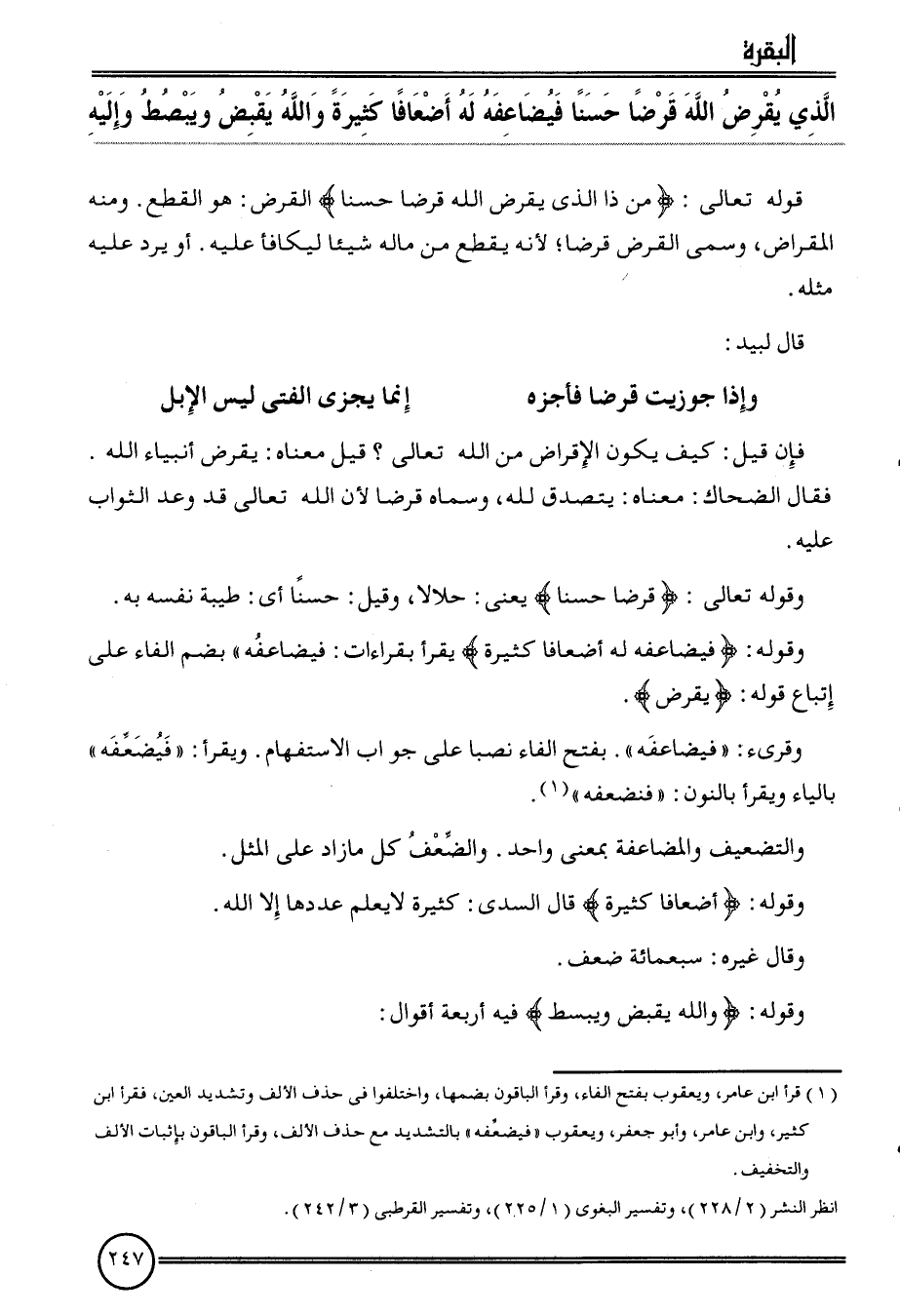 {الَّذِي يقْرض الله قرضا حسنا فيضاعفه لَهُ أضعافا كَثِيرَة وَالله يقبض ويبصط وَإِلَيْهِ}