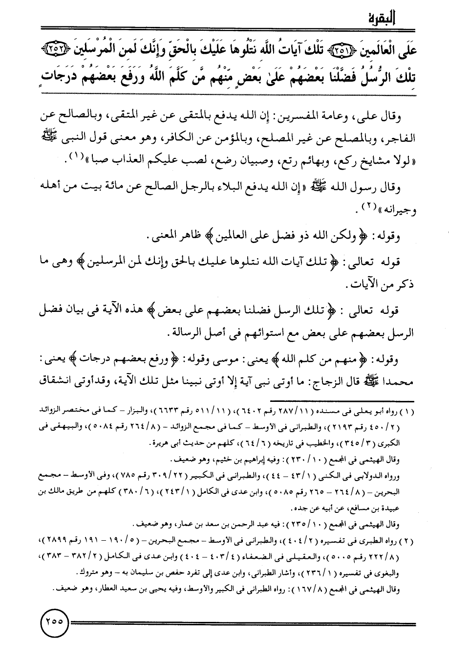 {على الْعَالمين (251) تِلْكَ آيَات الله نتلوها عَلَيْك بِالْحَقِّ وَإنَّك لمن الْمُرْسلين (252) تِلْكَ الرُّسُل فضلنَا بَعضهم على بعض مِنْهُم من كلم الله وَرفع بَعضهم دَرَجَات}
