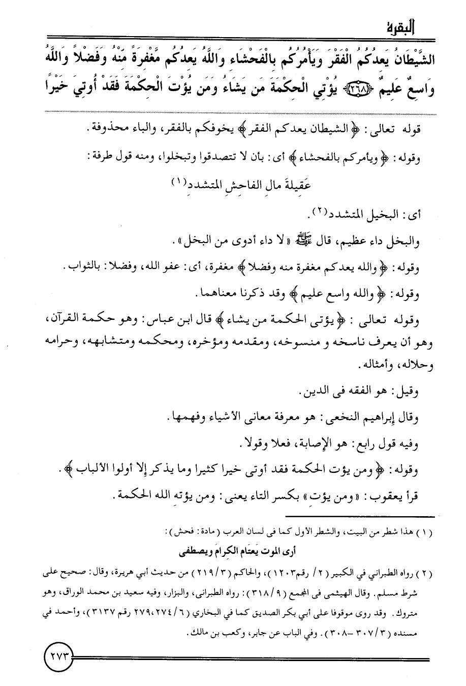 {الشَّيْطَان يَعدكُم الْفقر ويأمركم بالفحشاء وَالله يَعدكُم مغْفرَة مِنْهُ وفضلا وَالله وَاسع عليم (268) يُؤْتِي الْحِكْمَة من يَشَاء وَمن يُؤْت الْحِكْمَة فقد أُوتِيَ خيرا}