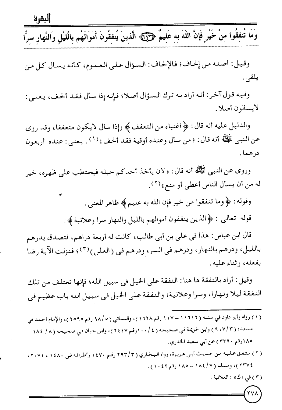 وَقَوله تَعَالَى: {الَّذين يُنْفقُونَ أَمْوَالهم بِاللَّيْلِ وَالنَّهَار سرا وَعَلَانِيَة} .