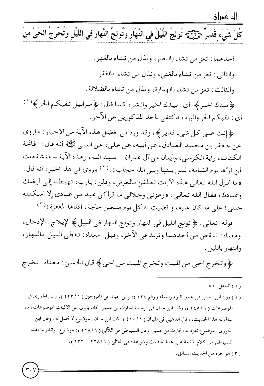 {كل شَيْء قدير (26) تولج اللَّيْل فِي النَّهَار وتولج النَّهَار فِي اللَّيْل وَتخرج الْحَيّ من}