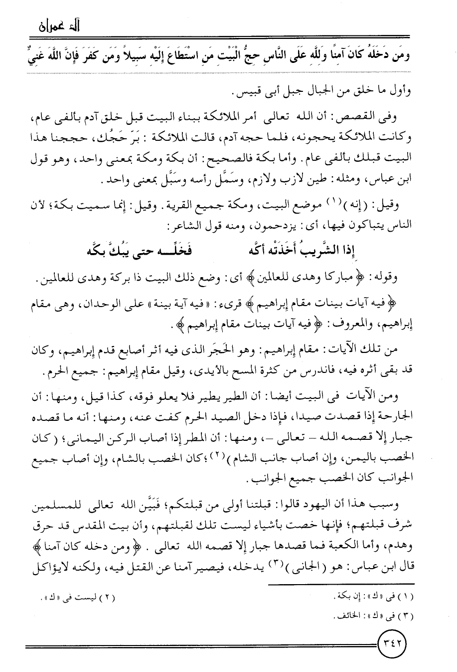 وَفِي الْقَصَص: أَن الله تَعَالَى أَمر الْمَلَائِكَة بِبِنَاء الْبَيْت قبل خلق آدم بألفي عَام، وَكَانَت الْمَلَائِكَة يحجونه، فَلَمَّا حجه آدم، قَالَت الْمَلَائِكَة: بر حجك، حجَجنَا هَذَا الْبَيْت قبلك بألفي عَام. وَأما بكة فَالصَّحِيح: أَن بكة وَمَكَّة بِمَعْنى وَاحِد، وَهُوَ قَول ابْن عَبَّاس، وَمثله: طين لازب ولازم، وسمل رَأسه وسبل بِمَعْنى وَاحِد.