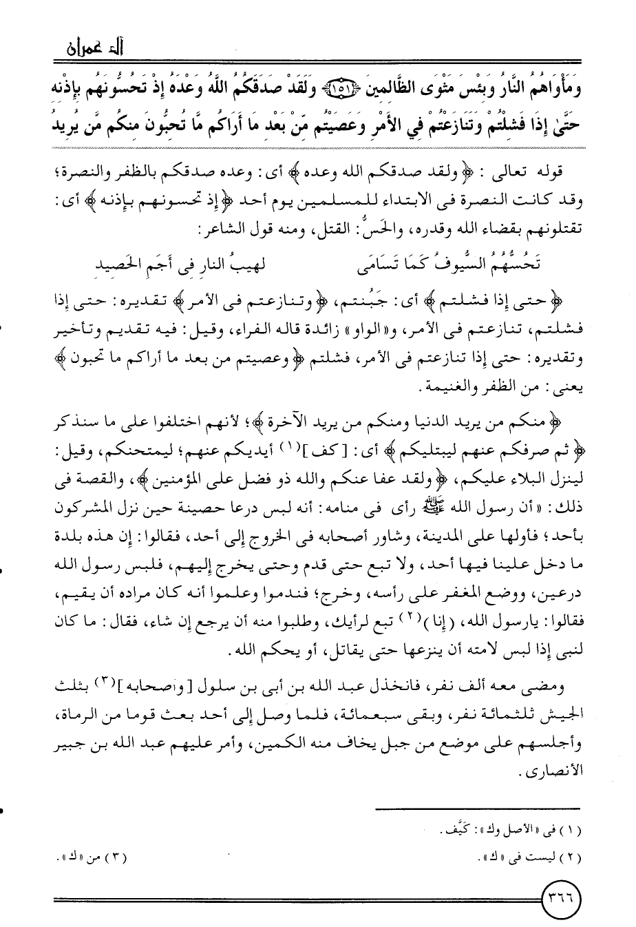 {ومأواهم النَّار وَبئسَ مثوى الظَّالِمين (151) وَلَقَد صدقكُم الله وعده إِذْ تحسونهم بِإِذْنِهِ حَتَّى إِذا فشلتم وتنازعتم فِي الْأَمر وعصيتم من بعد مَا أَرَاكُم مَا تحبون مِنْكُم من يُرِيد}