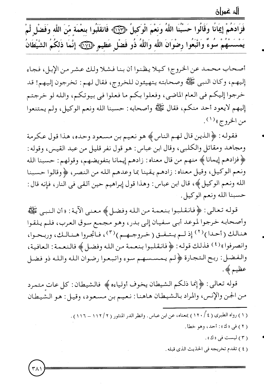 {فَزَادَهُم إِيمَانًا وَقَالُوا حَسبنَا الله وَنعم الْوَكِيل (173) فانقلبوا بِنِعْمَة من الله وَفضل لم يمسسهم سوء وَاتبعُوا رضوَان الله وَالله ذُو فضل عَظِيم (174) إِنَّمَا ذَلِكُم الشَّيْطَان}