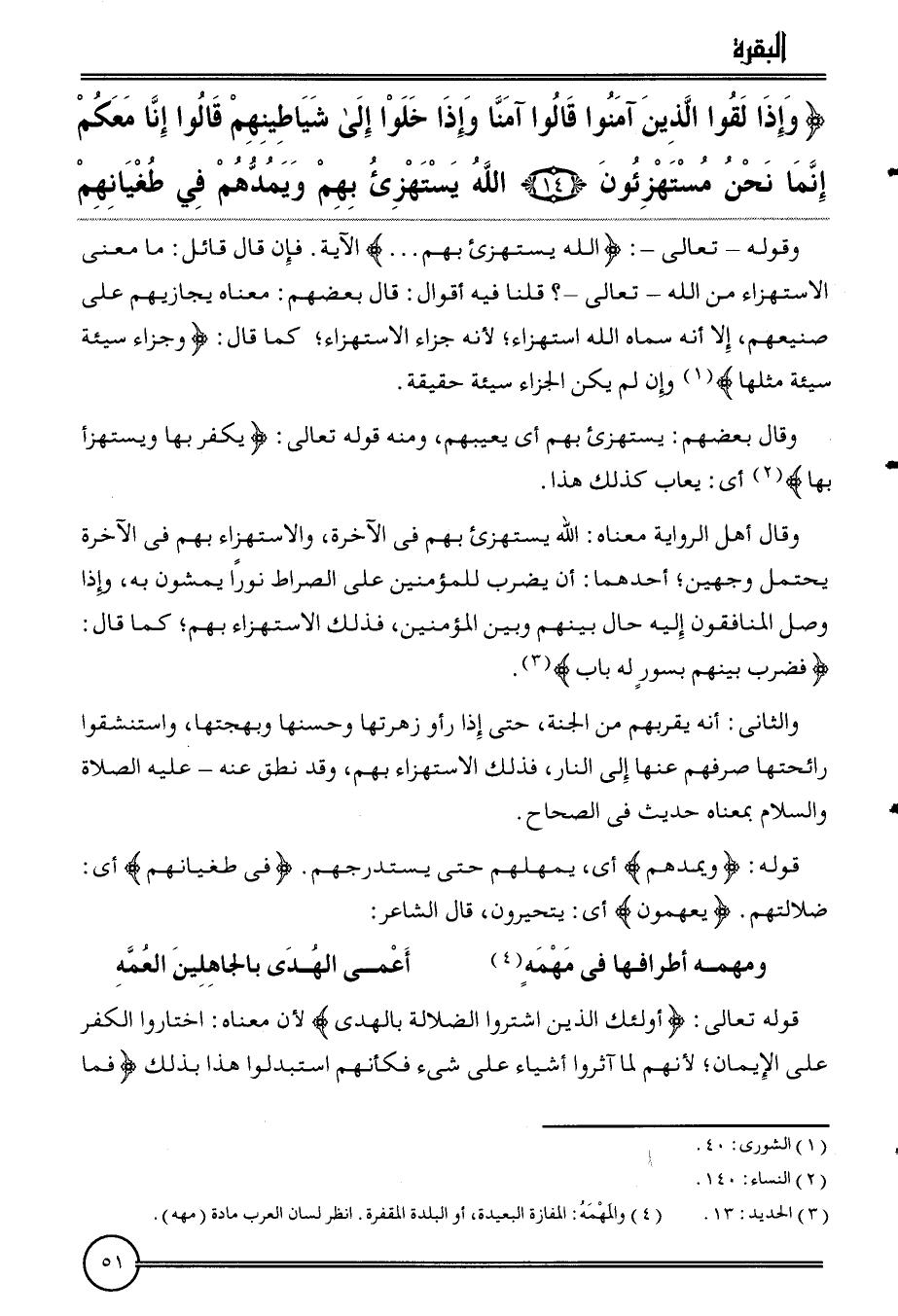 قَوْله: {ويمدهم} أَي، يمهلهم حَتَّى يستدرجهم. {فِي طغيانهم} أَي: ضلالتهم. {يعمهون} أَي: يتحيرون، قَالَ الشَّاعِر: