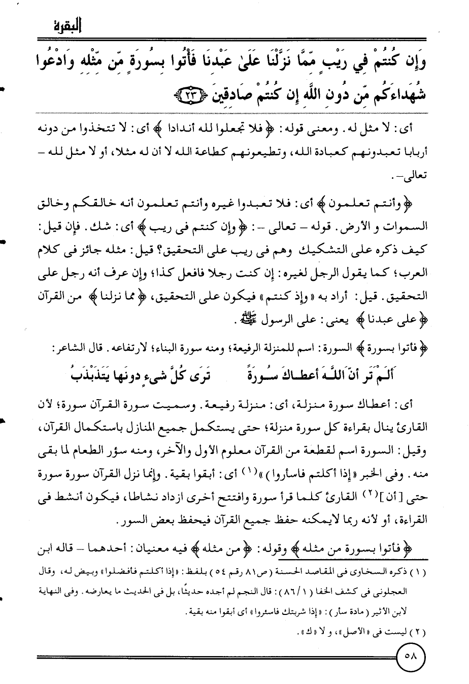 {فَأتوا بِسُورَة من مثله} وَقَوله: {من مثله} فِيهِ مَعْنيانِ: أَحدهمَا قَالَه ابْن