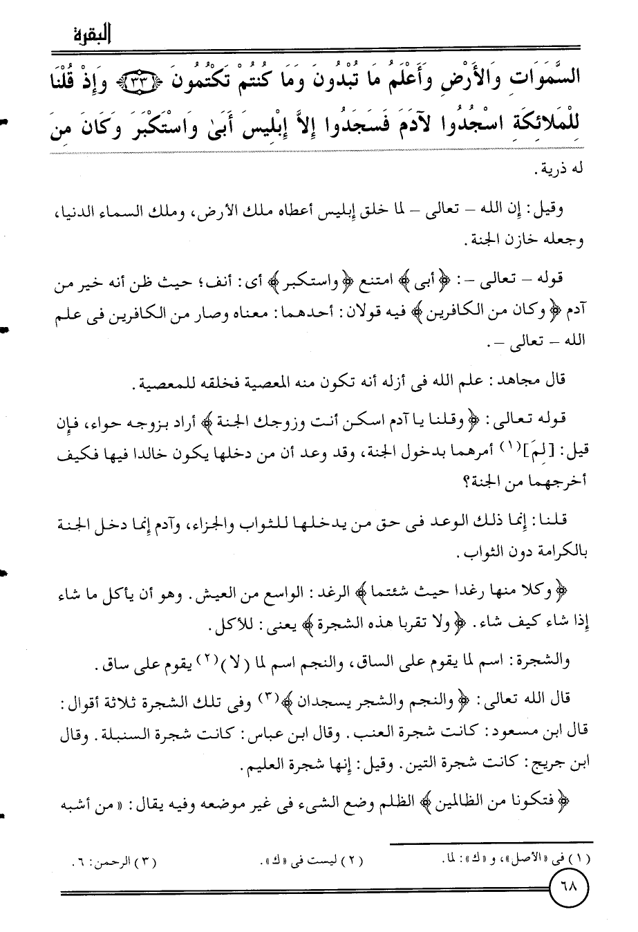 {السَّمَوَات وَالْأَرْض وَأعلم مَا تبدون وَمَا كُنْتُم تكتمون (33) وَإِذ قُلْنَا للْمَلَائكَة اسجدوا لآدَم فسجدوا إِلَّا إِبْلِيس أَبى واستكبر وَكَانَ من} لَهُ ذُرِّيَّة.