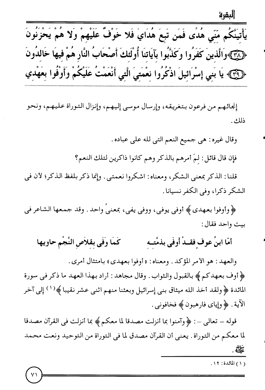 {يَأْتينكُمْ مني هدى فَمن تبع هُدَايَ فَلَا خوف عَلَيْهِم ولاهم يَحْزَنُونَ (38) وَالَّذين كفرُوا وكذبوا بِآيَاتِنَا أُولَئِكَ أَصْحَاب النَّار هم فِيهَا خَالدُونَ (39) يَا بني إِسْرَائِيل اذْكروا نعمتي الَّتِي أَنْعَمت عَلَيْكُم وأوفوا بعهدي}