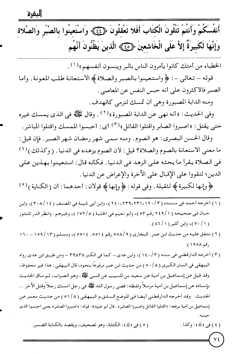 {أَنفسكُم وَأَنْتُم تتلون الْكتاب أَفلا تعقلون (44) وَاسْتَعِينُوا بِالصبرِ وَالصَّلَاة وَإِنَّهَا لكبيرة إِلَّا على الخاشعين (45) الَّذين يظنون أَنهم} الخطباء من أمتك كَانُوا يأمرون النَّاس بِالْبرِّ وينسون أنفسهم ".